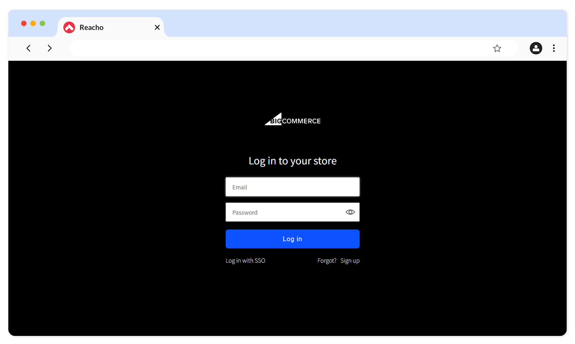 3. You’ll be redirected to the BigCommerce login screen. Log in to your BigCommerce account.