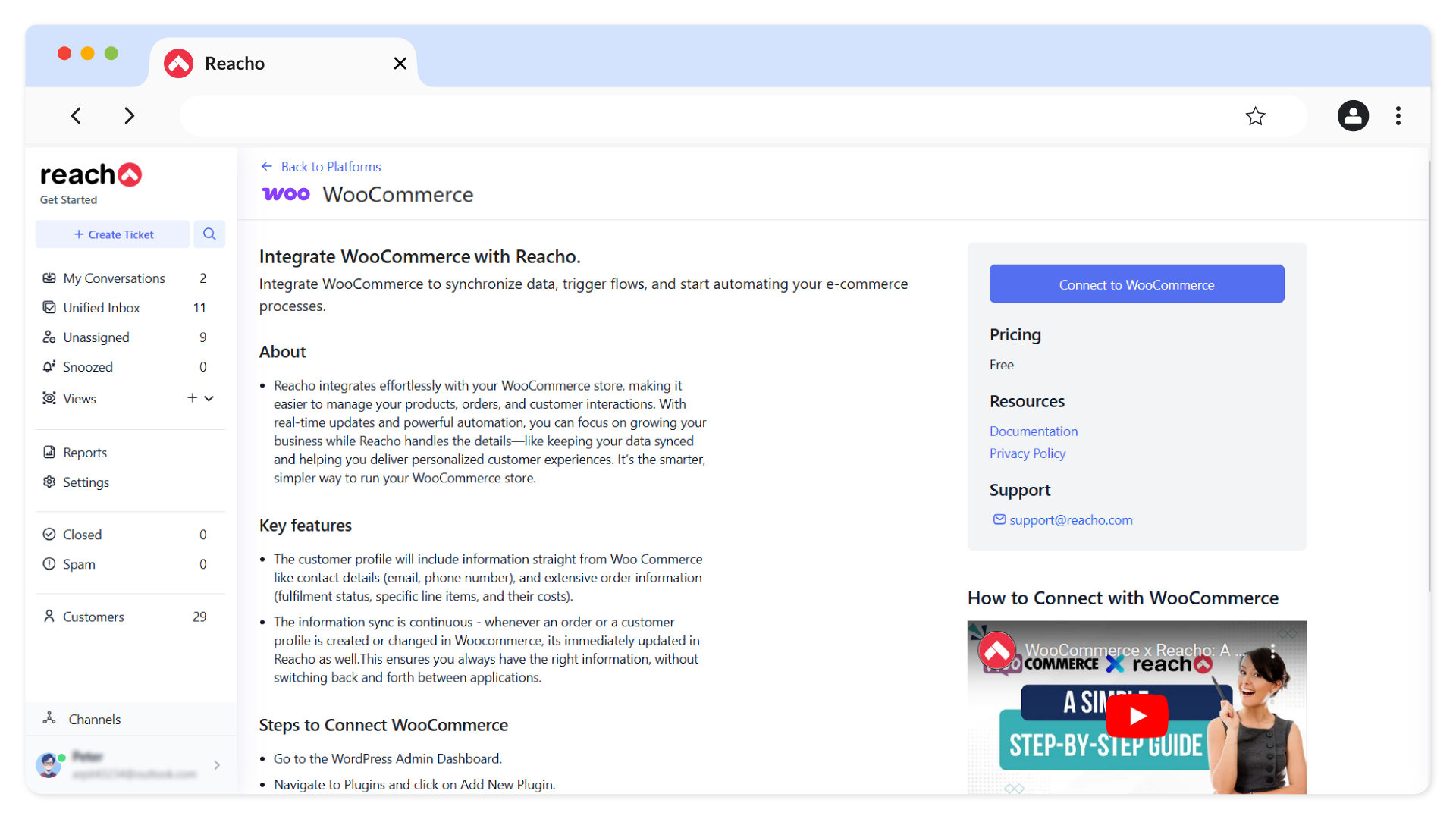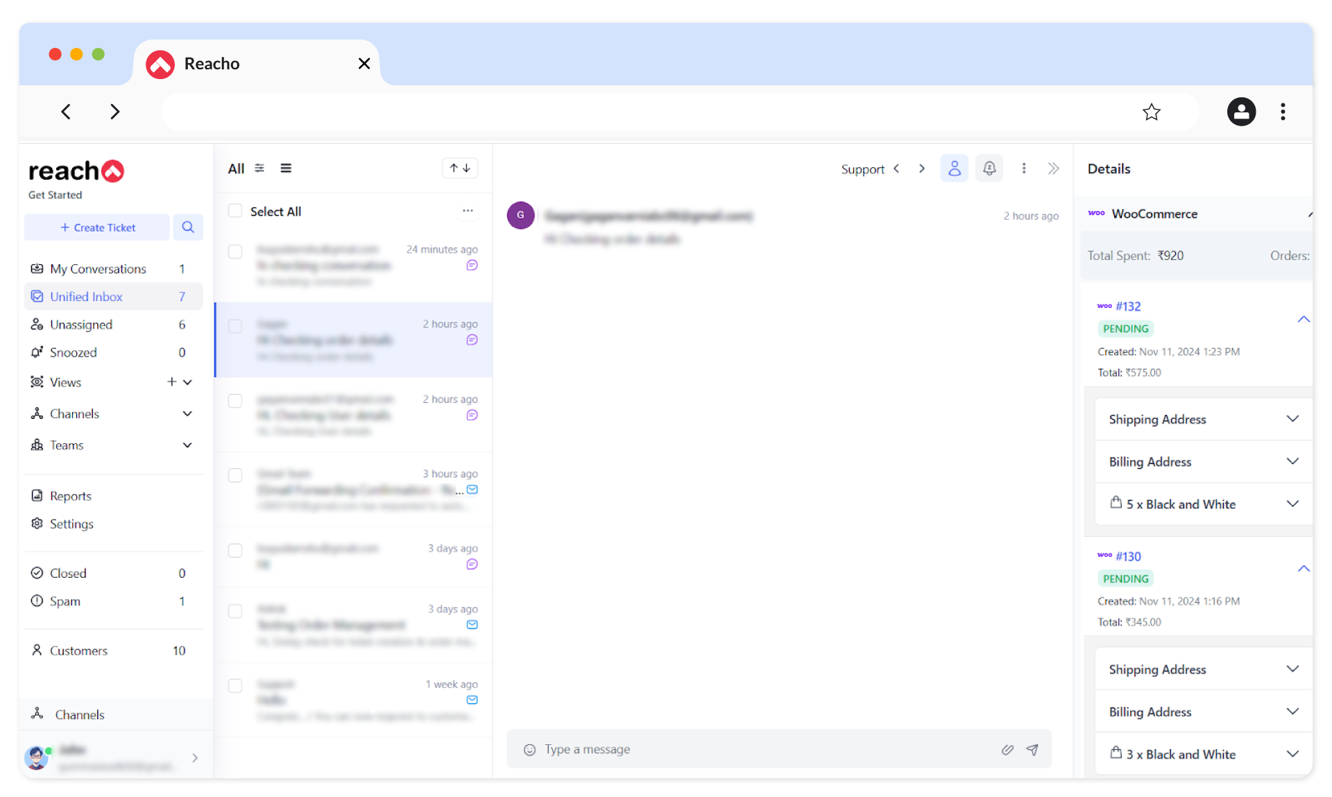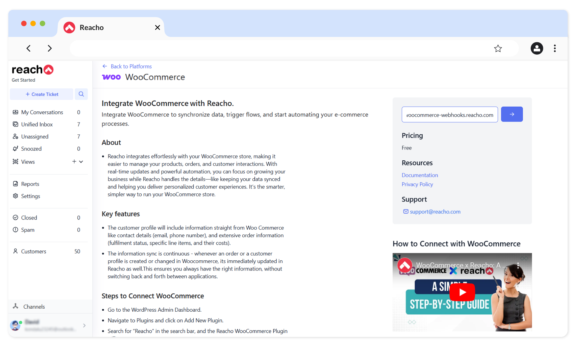 14. All customer contacts and order history from WooCommerce will then sync automatically in Reacho, enhancing order management and customer support capabilities.